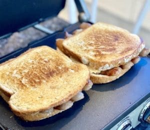 Sausages, bacon, potato chips, jalapeños, onions and cheese in a golden buttered toast. Say hello to the ultimate Bacon and Sausage Sandwich