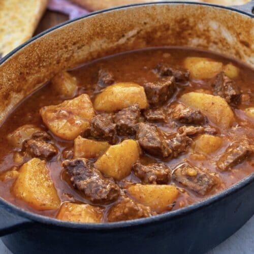 Potatoes: Waxy potatoes work best for this stew as they hold their shape during long cooking. Kipfler, Russet, Yukon Gold, all-purpose, and low-GI potatoes are all excellent choices.