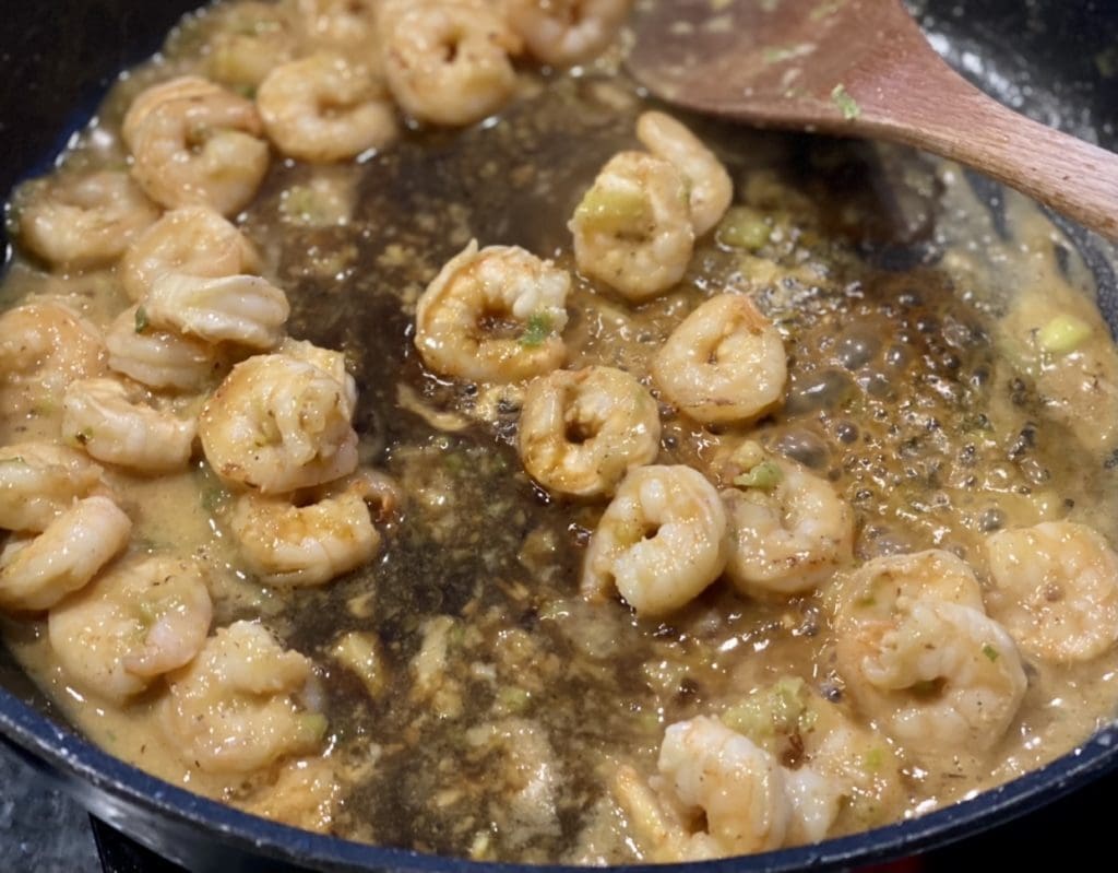 - Heat a tablespoon of oil in a deep large frying pan over high heat. Add in the prawns and sear them on each side for 30 seconds. Transfer the prawns onto a plate and set aside.