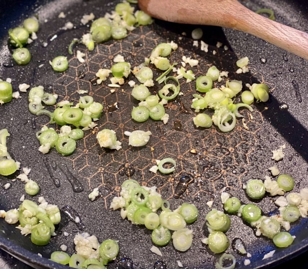 This pasta dish brings together Italian and Japanese flavours together. Al dente pasta thrown in with butter, garlic, spring onions, sweet miso, wine, prawns and parmesan cheese.