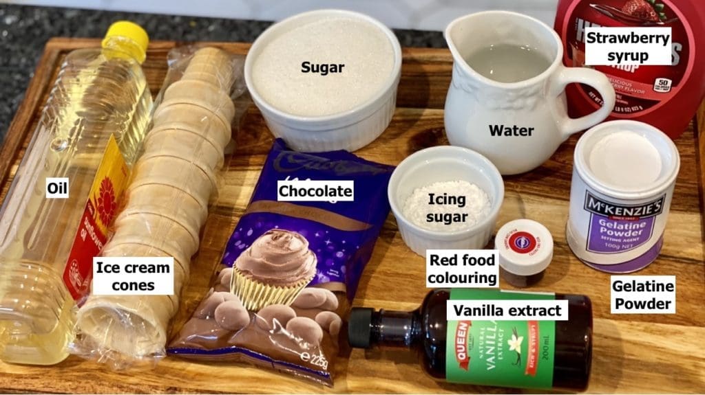 There are 3 main components to making these bloody ice cream cones. It may look overwhelming at first glance but it’s quite straight forward.