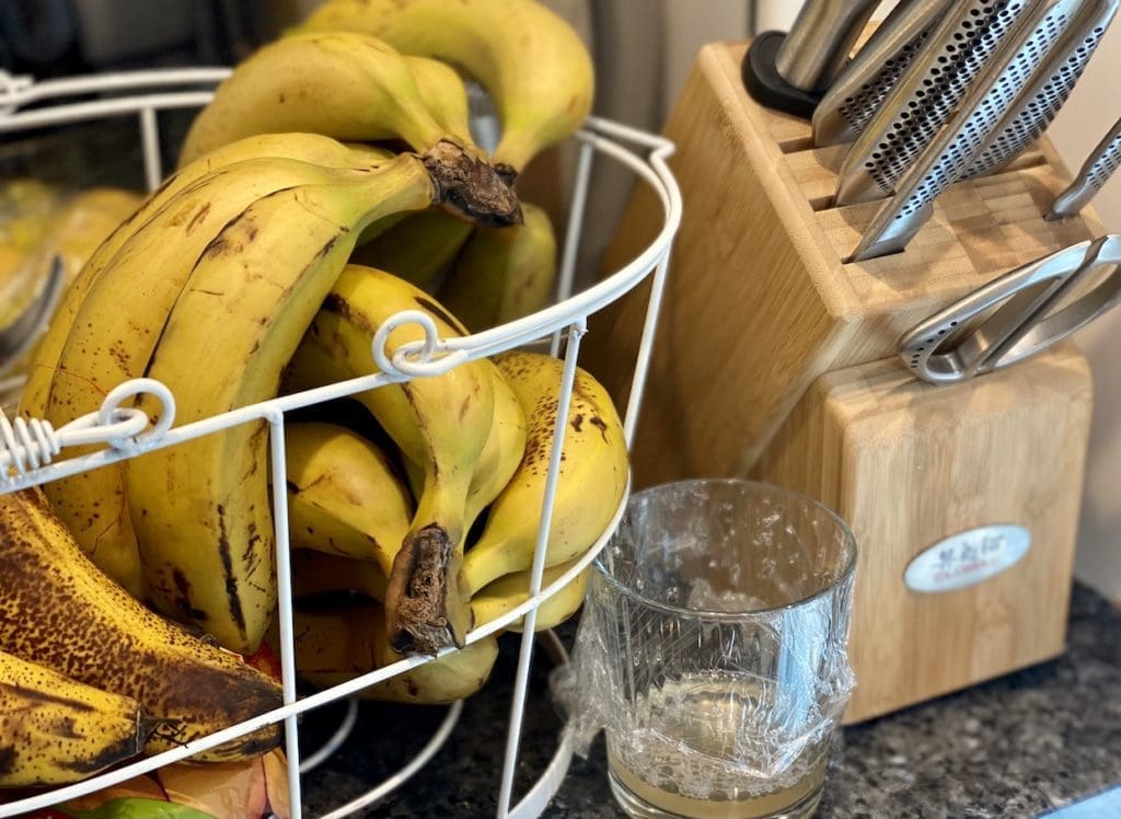 When I transferred her fruit into our basket I noticed a few fruit flies buzzing around. I ignored them thinking that they’ll go away on there own but instead they multiplied daily, and before we knew it our kitchen was infested with them!
