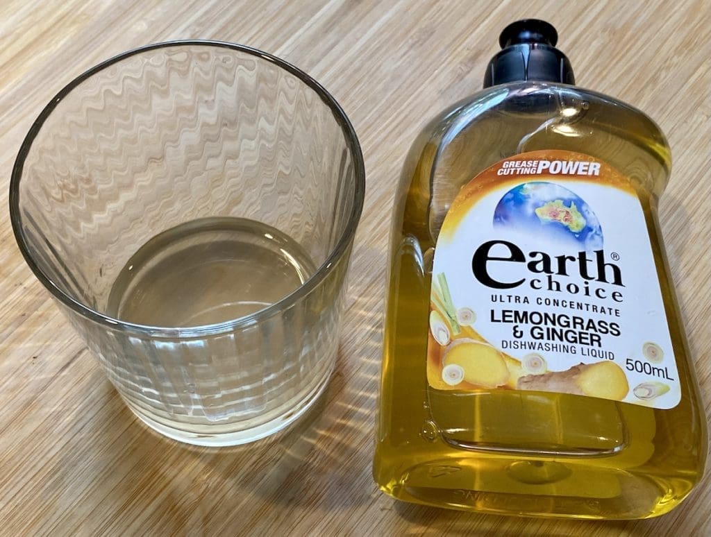 Using a short glass or cup pour in 3 tablespoons of apple cider vinegar, 1 tablespoon of water and two drops of liquid dish soap and stir well.