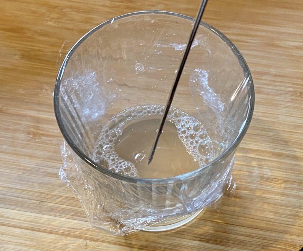 Skewer/toothpick – is needed to poke holes into the cling wrap so the fruit flies can enter but will have a hard time getting back out.