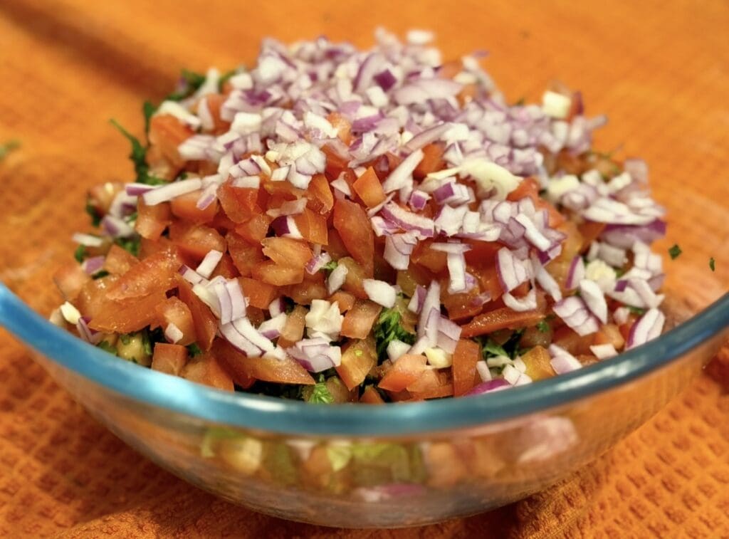 - 2 (320g / 11oz) medium firm tomatoes, seeds removed, diced into small cubes (NOTE 2)