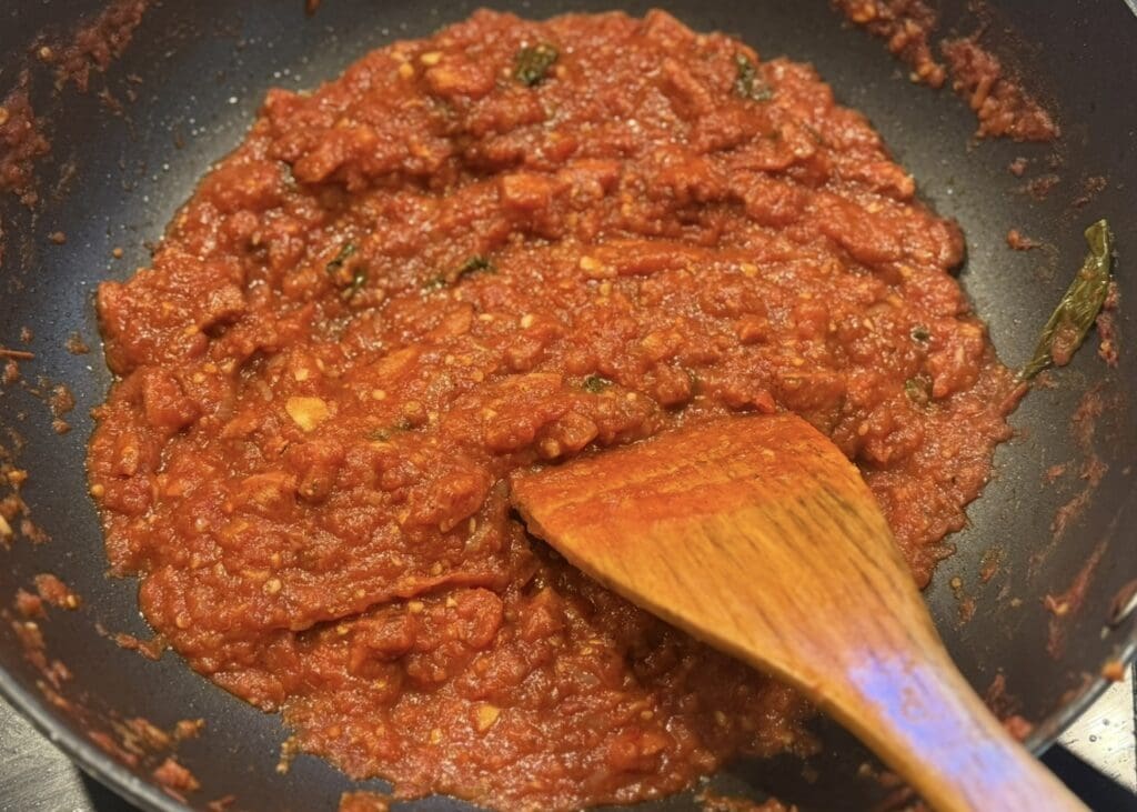 Crushed tomatoes are made from ripe, peeled, and crushed tomatoes, and then canned. You could also use passata or tomato puree in place of crushed tomatoes. Canned tomatoes are usually acidic, so they need to cook for a long time to become sweet. To balance the sourness of the tomatoes, this recipe calls for a small amount of sugar since we only cook the sauce for 20 minutes.