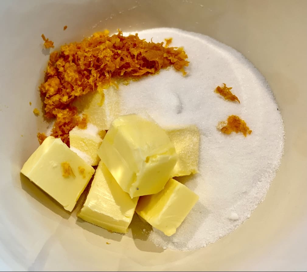 Using a stand or hand mixer, beat the butter, sugar and zest together until the mixture is fluffy and pale (approximately for 5 minutes on high speed)