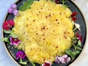 Simple, unique & tasty with only 4 ingredients! This Pineapple Carpaccio is a perfect balance of sweet, sour, spicy & salty