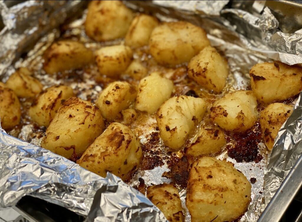 Preheat oven to 210°C (410°F) or 190°C (374°F) for fan-forced ovens. To make cleaning easier, line the baking tray with baking/parchment paper, then line the entire inside of the tray with foil. If roasting potatoes with the duck – Ensure the foil is lined carefully, especially at the base, to catch the fat drippings, you don’t want the fat to seep under the foil.