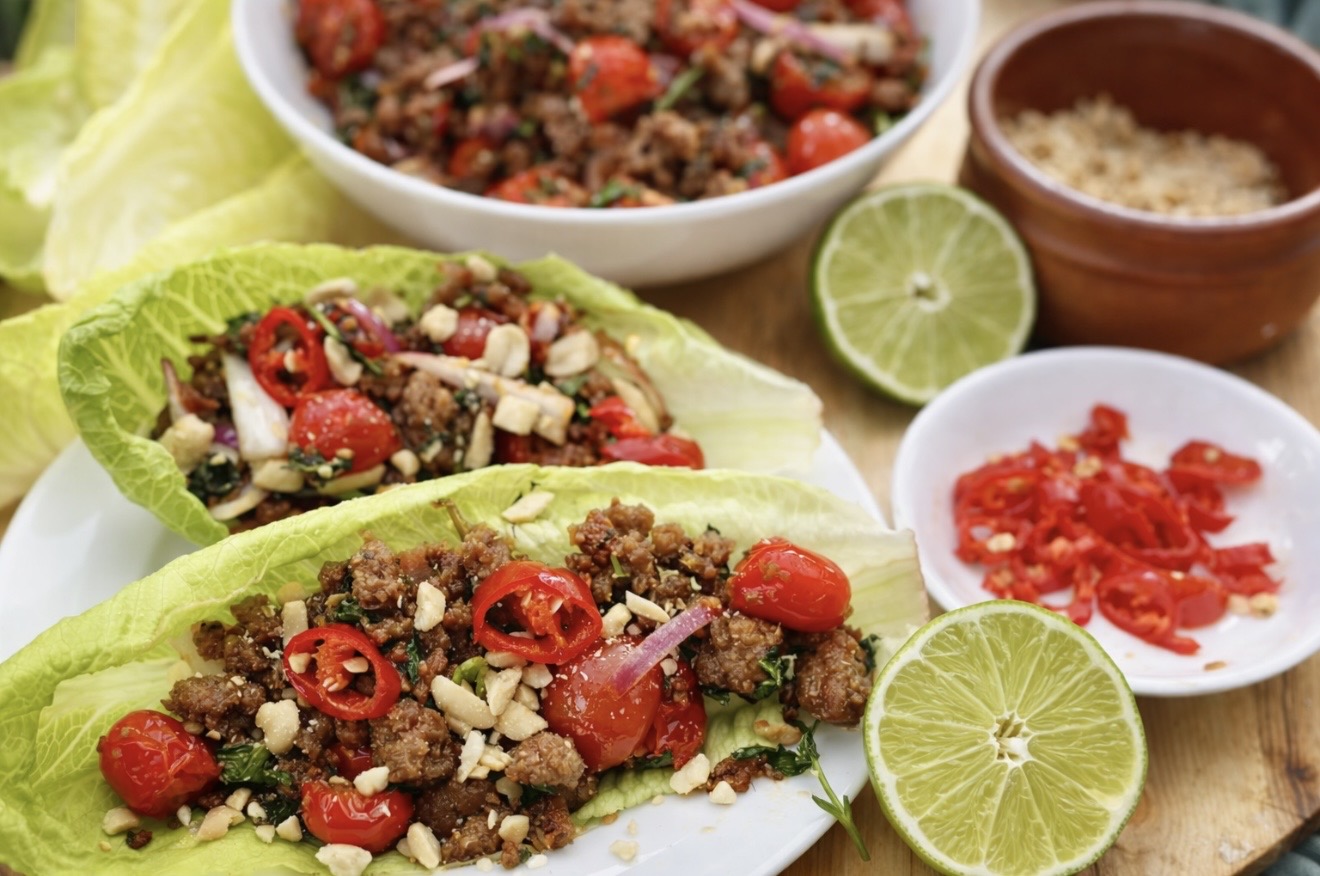 Asian Lettuce Wraps (Vietnamese-style with crispy pork)